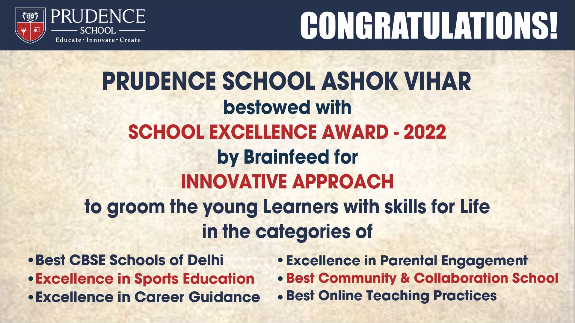Read MorePrudence School , Ashok vihar bestowed with School Excellence Award -2022 by Brainfeed.