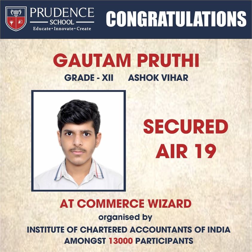Prudence School congratulates Gautam Pruthi of grade XII for securing AIR 19 at COMMERCE WIZARD orga......