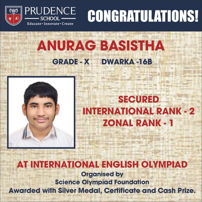 Prudence School congratulates ANURAG BASISTHA of Grade X for securing International rank 2 and......