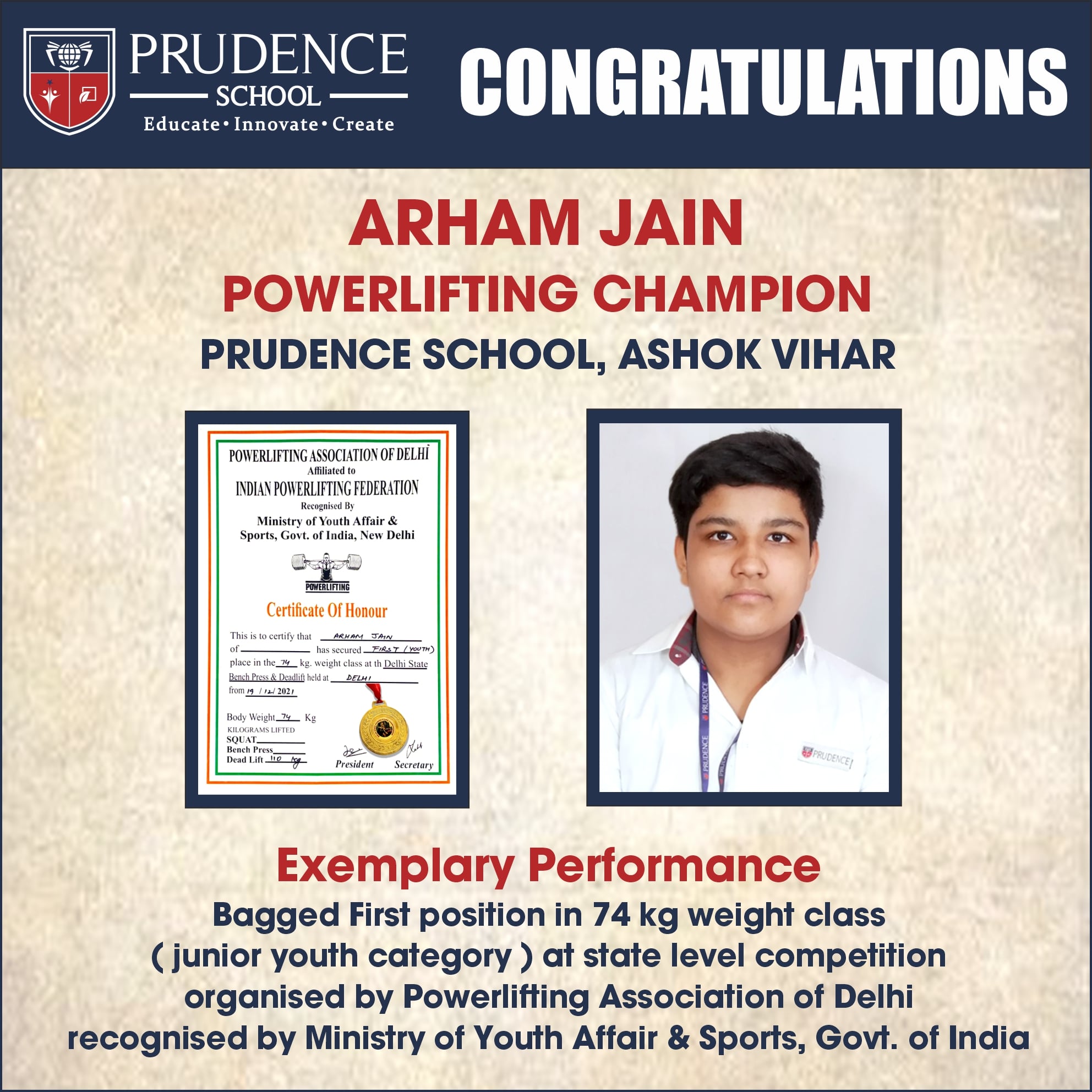 Congratulations to Arham Jain of Prudence School Ashok Vihar for winning the Power Lifting Champions......