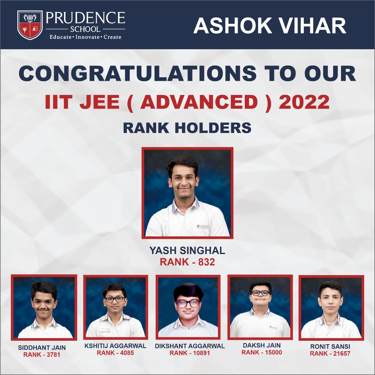 Prudence congratulates its IIT JEE (ADVANCED) 2022 Rank holders #JEEAdvanced #JEEAdvanced2022...