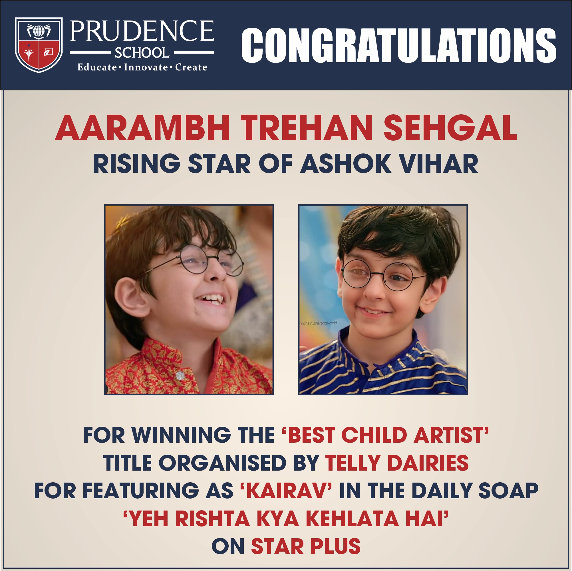 Rising Star of Prudence Ashok ViharAARAMBH TREHAN SEHGALWinner of 'Best Child Artist' award title or......